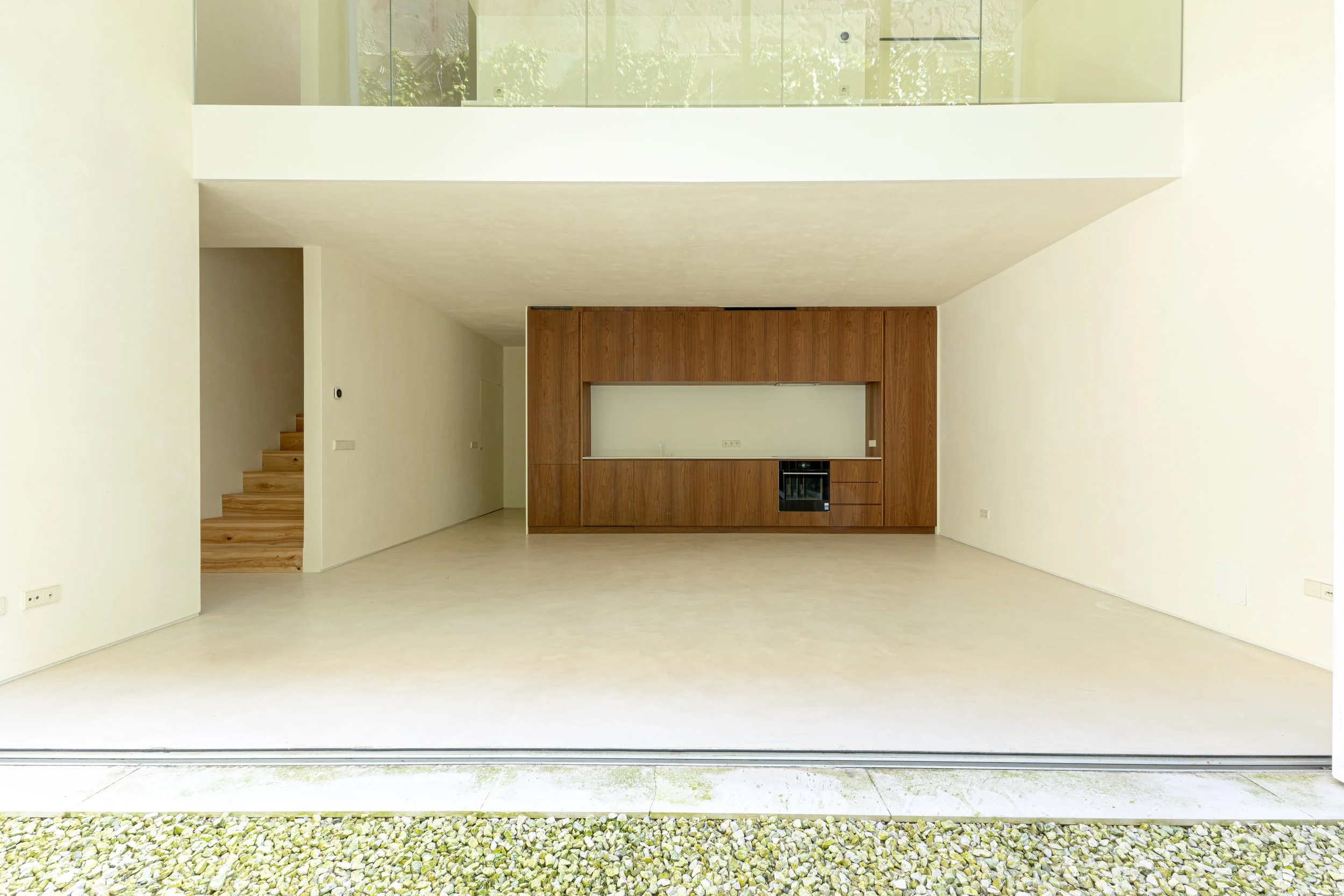 Tactile Finishes: Seamless floors and walls finished with Marmorino by DIASEN lime plaster offer a soft, organic aesthetic together with advanced thermal and acoustic insulation.